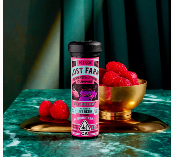 The tart, fruity and vanilla aromas of the Wedding Cake strain give character to this gummy’s sweet, bright berry flavors.
